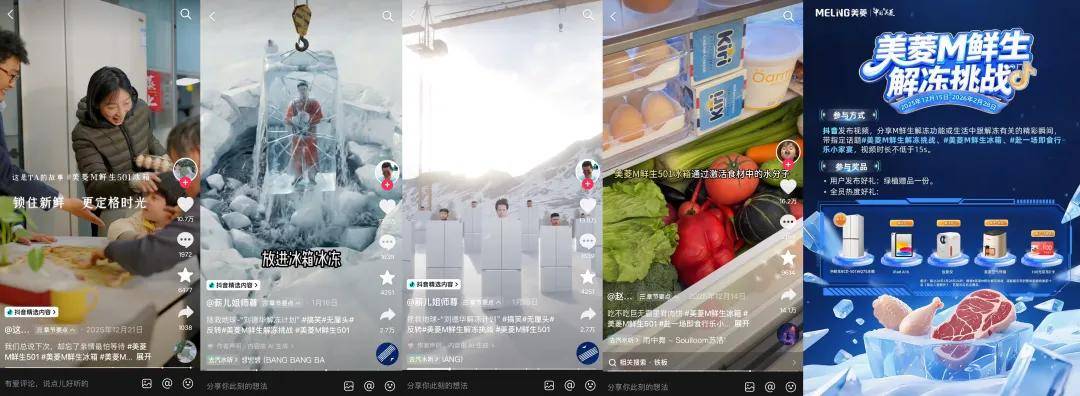 通过剧情化种草的方式,品牌打破了技术传播壁垒,赋予产品情感温度。如在@这是TA的故事 内容中,以“奶奶存菜只为等待儿孙”的温情剧情,引出美菱冰箱的锁鲜解冻功能,并自然升华至珍惜亲情的情感内核。同时,品牌大胆采用荒诞创意突破圈层,如合作达人@薪儿姐师尊 在“刘德华解冻计划”中,以无厘头的反转剧情,强化产品核心卖点,在年轻用户中形成了强烈的记忆点和传播性。此外,品牌发起“美菱M鲜生解冻挑战”,联动不同层级达人参与,通过分层种草策略,广泛触达不同决策链路的消费人群,让技术卖点在多元叙事中变得生动可感。