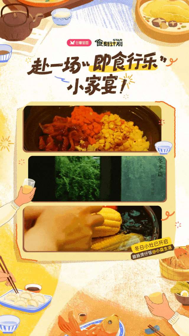 当温暖的场域已经搭好,品牌如何“入席”,并讲出属于自己的动人故事?「赴一场即食行乐小家宴」IP通过达人共创和场景深度绑定,为不同品牌带来了定制化的叙事解决方案。